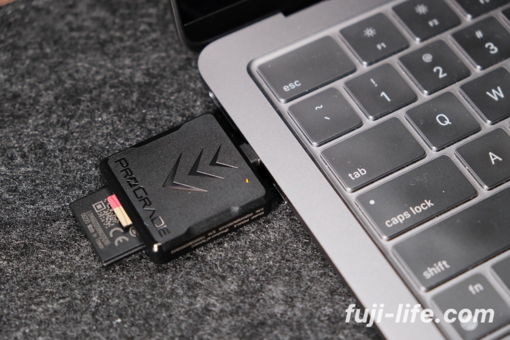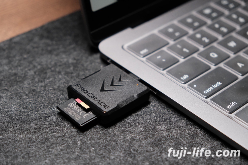 以前使用していたSATECHIのSDカードリーダーもUHS-Ⅱ対応で読み込み速度は安定しておりコンパクトではあったが、今回購入したPRO GRADEは読み込みも早く更にコンパクトなデザインとなっている。